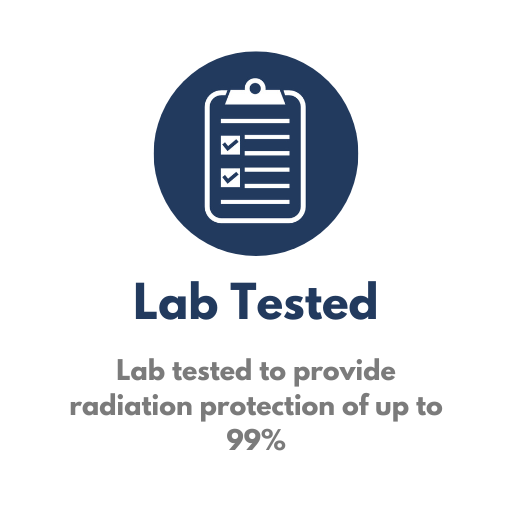 The silver fabric inside our products has been lab tested to provide radiation protection of up to 99%