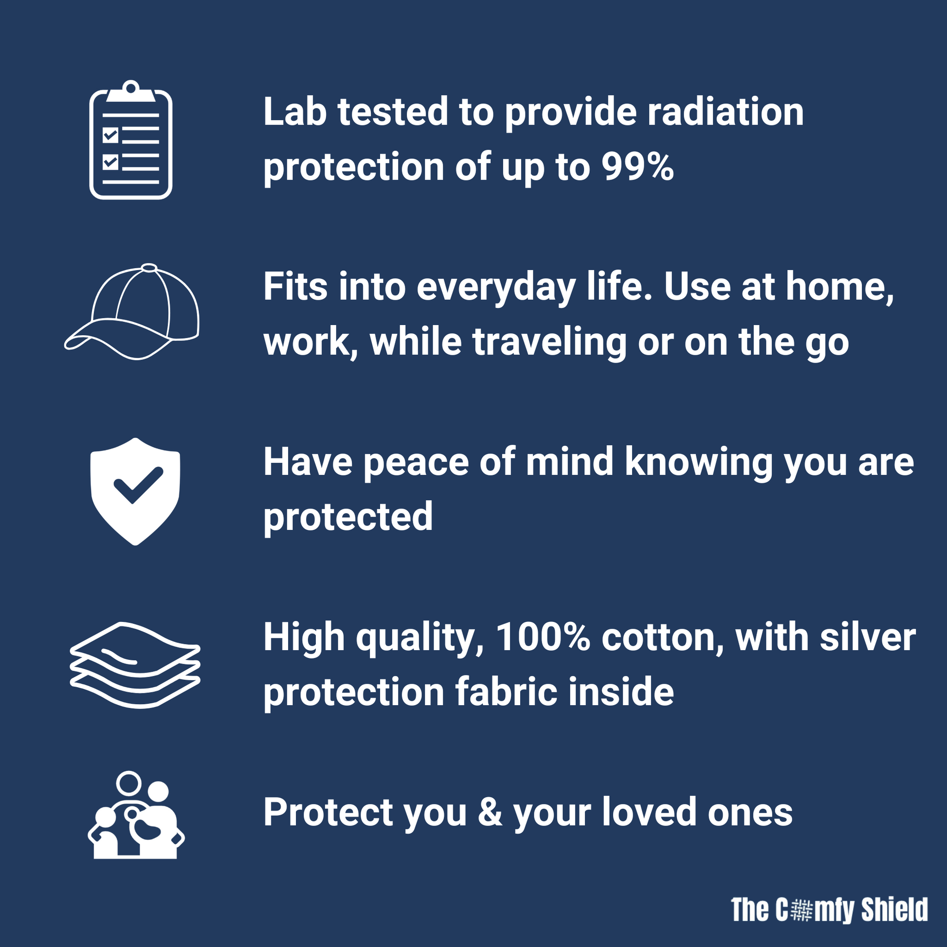 Comfy & Protected - Have peace of mind & protect your head from the health risks of wireless radiation. Our Caps are designed to keep you protected, comfy & safe!
