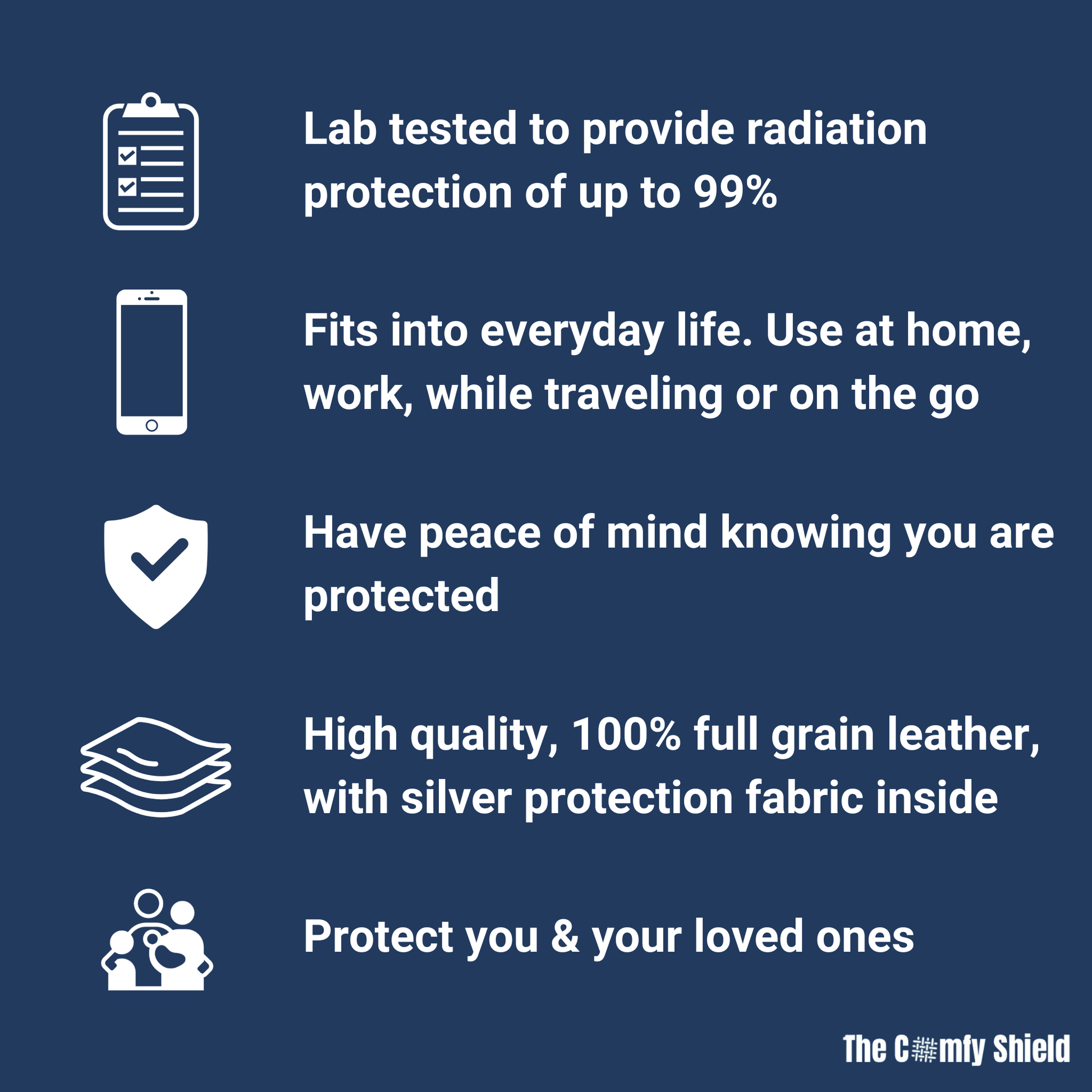 Peace of mind - It shields you from radiation from your phone as well as radiation from wireless signals like 5G, WiFi & Bluetooth
